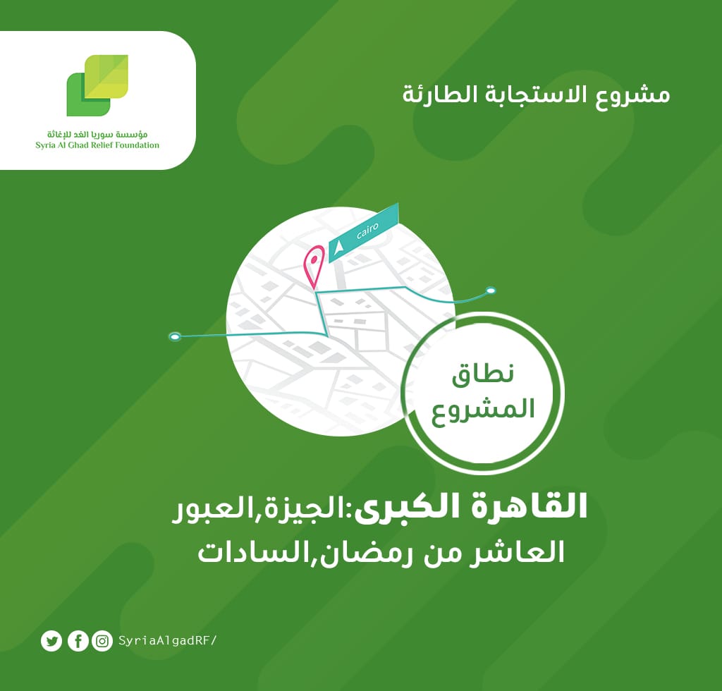 توزيع السلل الغذائية الذي نفذته مؤسسة سوريا الغد للإغاثة بمدينة العاشر من رمضان.