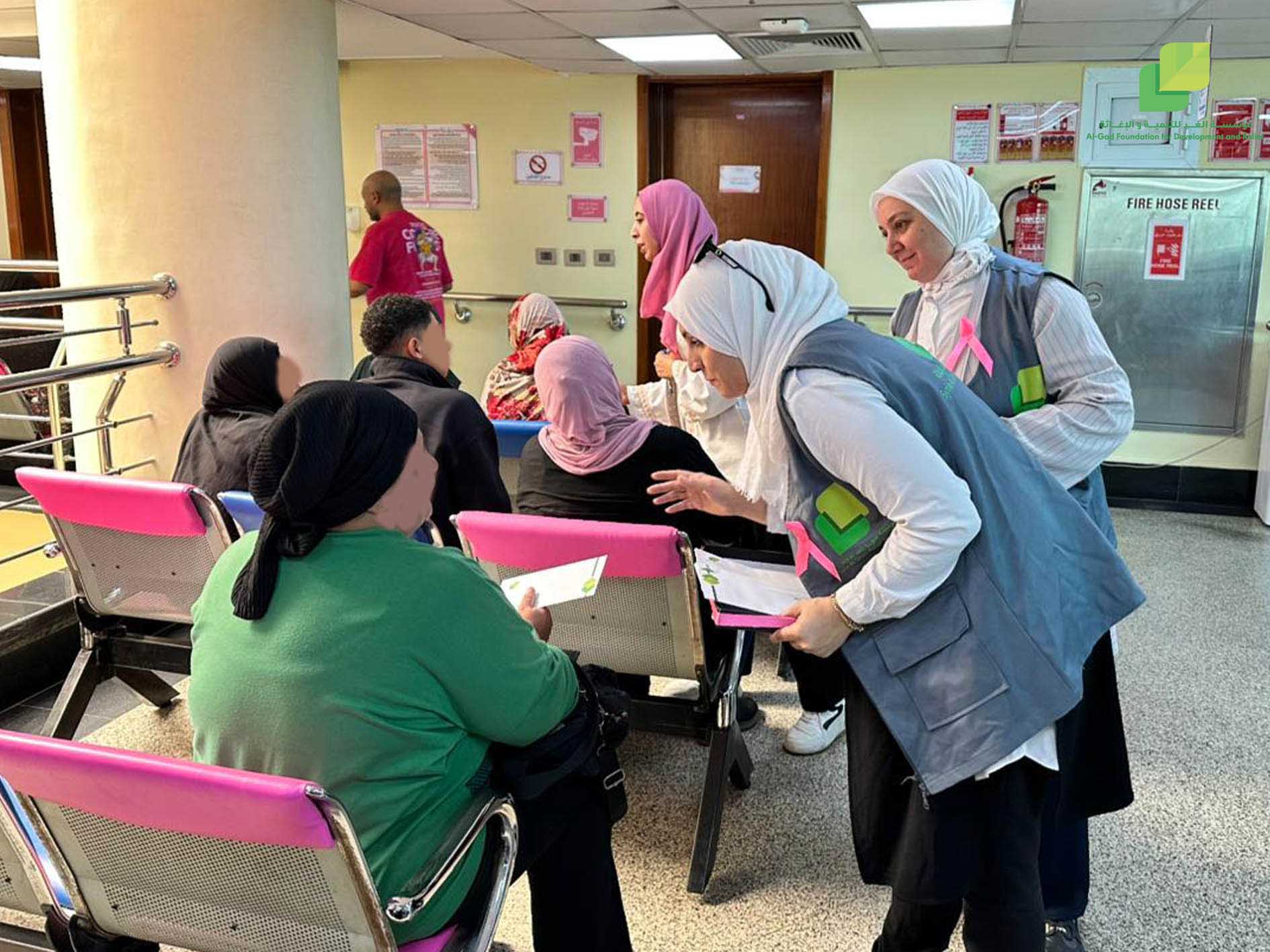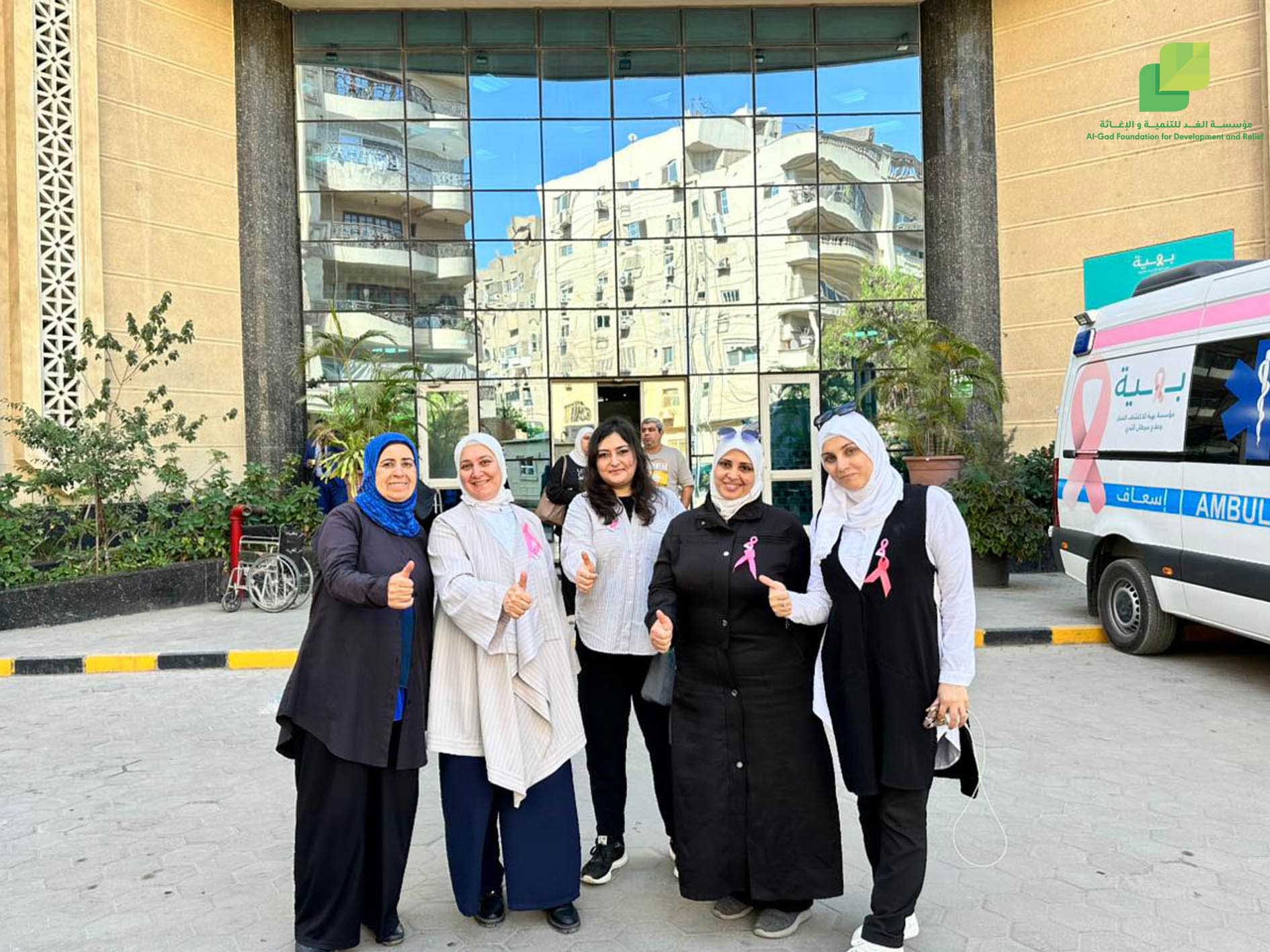 بمناسبة الشهر العالمي للتوعية بسرطان الثدي قامت مؤسسة الغد للتنمية والإغاثة بزيارة خمسين سيدة من محاربات سرطان الثدي في مؤسسة بهية في منطقة الهرم، في إطار جهودها لنشر الوعي وتعزيز الاندماج مع المجتمع المصري، وتجسيداً لقيم التفاعل الإنساني والتكافل الاجتماعي. حيث تم توزيع 50 كوبون غذائي وكروت تحمل قطعاً من الشوكلا وعبارات لطيفة بهدف تقديم الدعم النفسي والمعنوي لهن .
